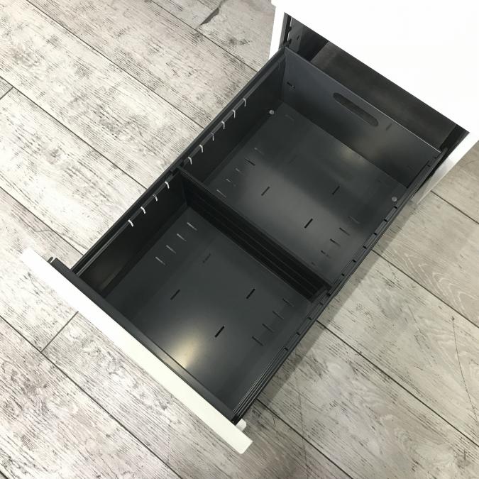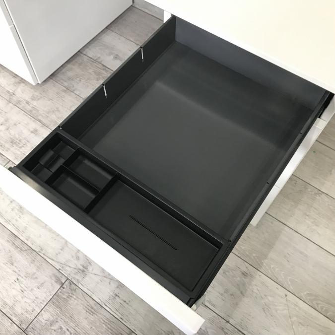 奥行き650mmタイプとなり、一般的なデスク(奥行き700mm)よりもコンパクトな設計となっております。