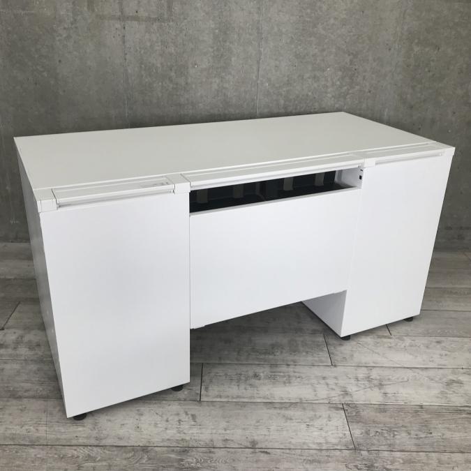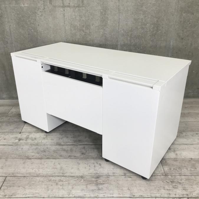 横幅1400mmと幅広いワークスペース、左右大量のA4収納、またPC配線用に
