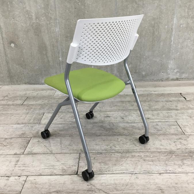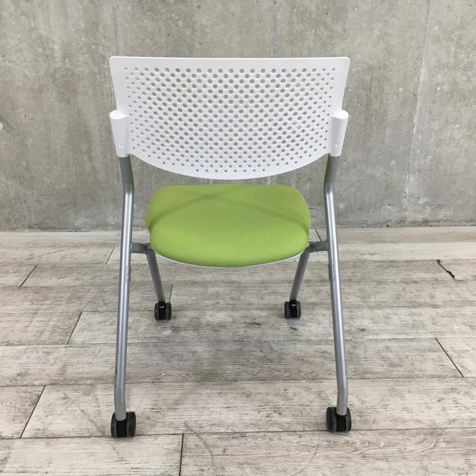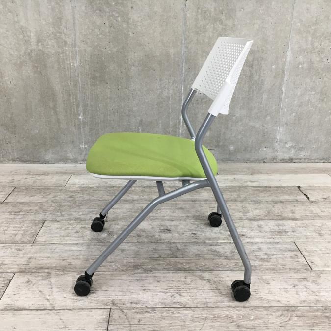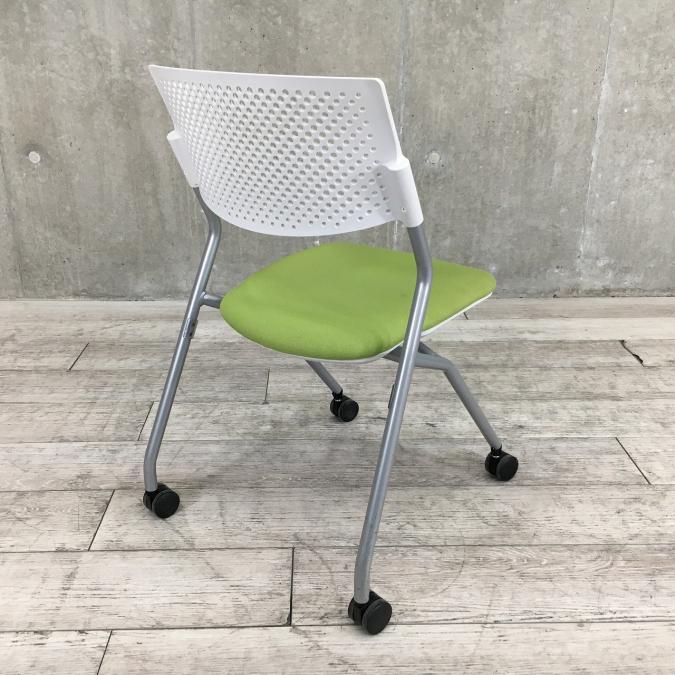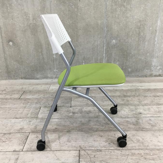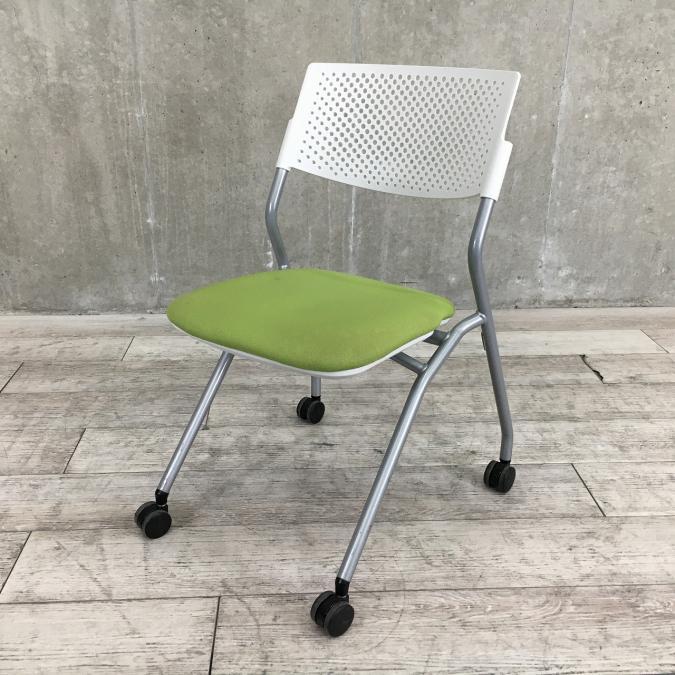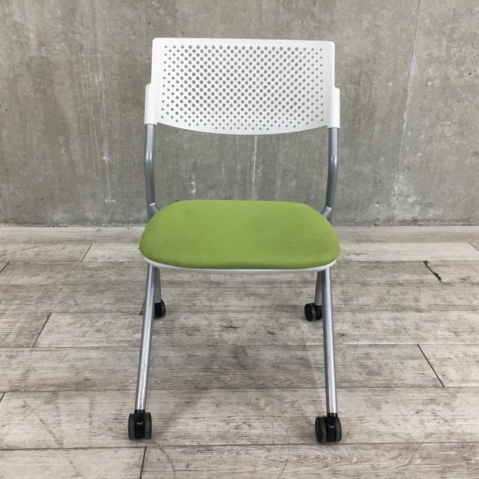 【折り畳んで収納!キャスター付で動作も楽々!】■ウチダ(UCHIDA)製 FM-365シリーズ ネスティングチェア ミーテイングチェア ■背:ホワイト 座面:ライトグリーン