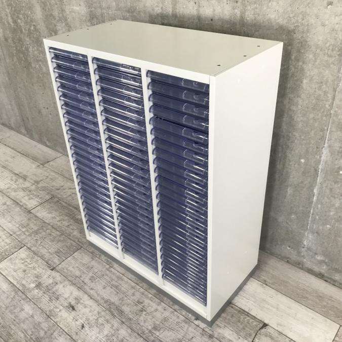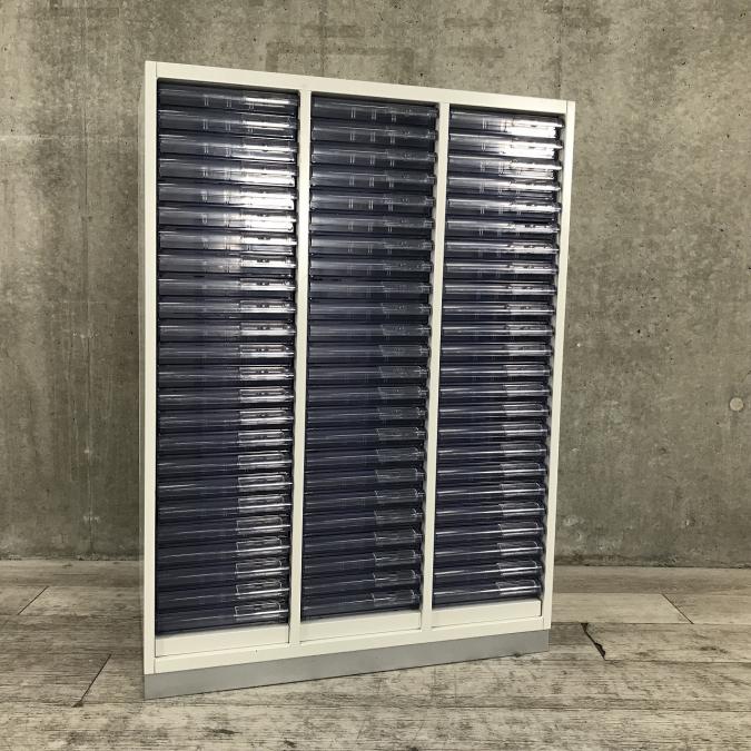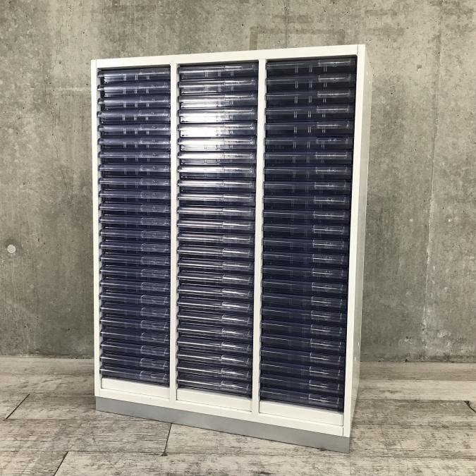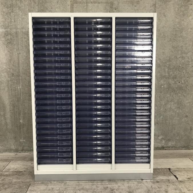 【中の確認がすぐできる!】 クリスタルトレーキャビネット浅型24段 ニューグレー- 茨城南店