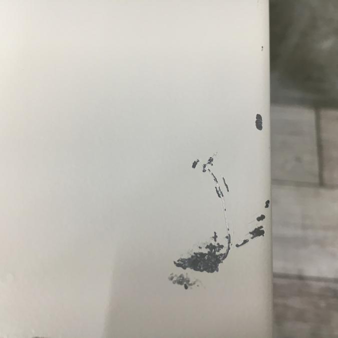 - あり黄ばみ・変色が広い範囲にうっすらある、または濃い黄ばみ・変色が一部ある。(例、天板、正面、背後、サイド部分にある。)