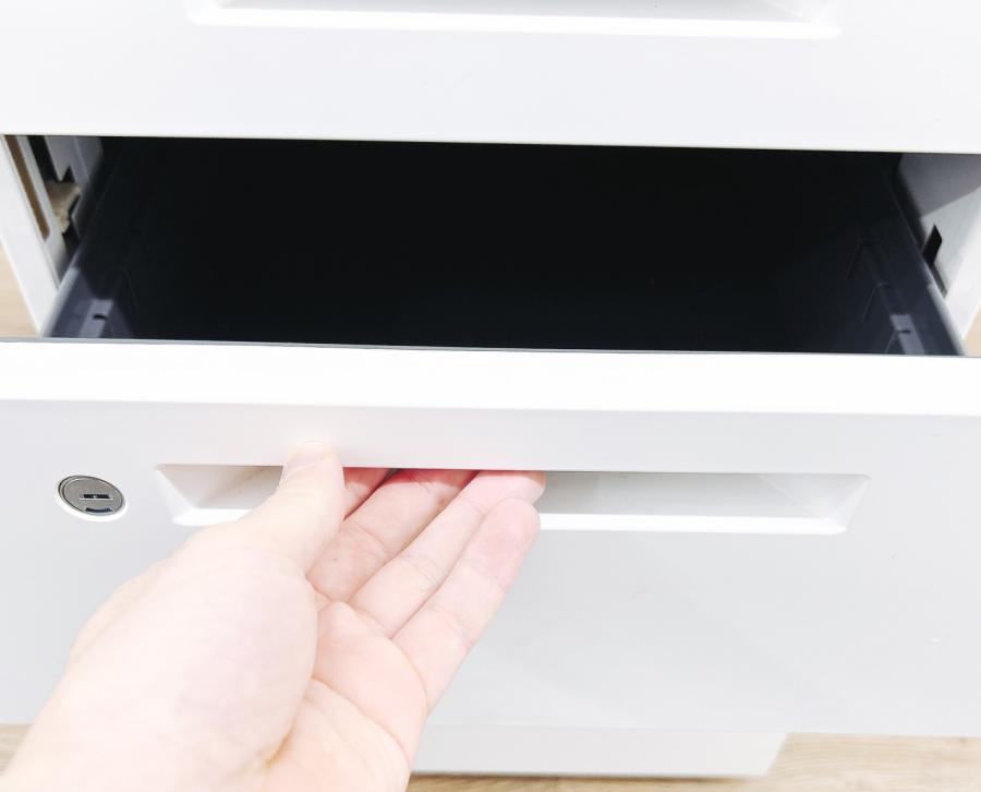 デスクの脇のスペースがちょっと空いてるな、とお考えの方には、デスク横に配置するのもオススメです!足元の横幅が400mmも広がるので、かなり広がってデスクワークも快適です。国内メーカー品の為品質◎!
