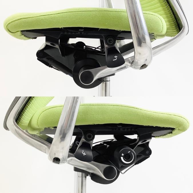 - 座面の右下にあるレバーの操作により座面位置を上下に100mm分調整することが可能です。