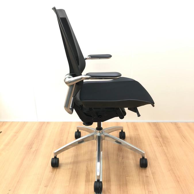 また、腰を掛けると座面シートが体重に合わせて自然な形でスムーズに後方へ沈み込み、固すぎも柔らかすぎもせずな位で、背に適度にフィットします!