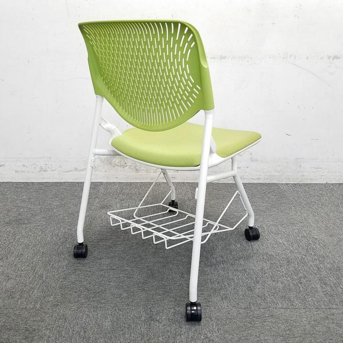 【関東倉庫在庫品】【フレキシブルに使える!便利なネスティングチェア!】■オカムラ(okamura) ルナチェア(RUNA) ネスティングチェア ミーティングチェア 肘無し ■キャスター付 ■背面樹脂メッシュ(ヌードタイプ) ■グリーン 【弊社使用欄:A01014732】【ECBMC】