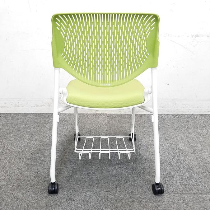 【T11】【T10】【商品入替のため、残り6脚限り】オカムラ製 ルナシリーズ ライムグリーン ホワイトフレーム 軽快なデザインが人気 ネスティングチェア!!