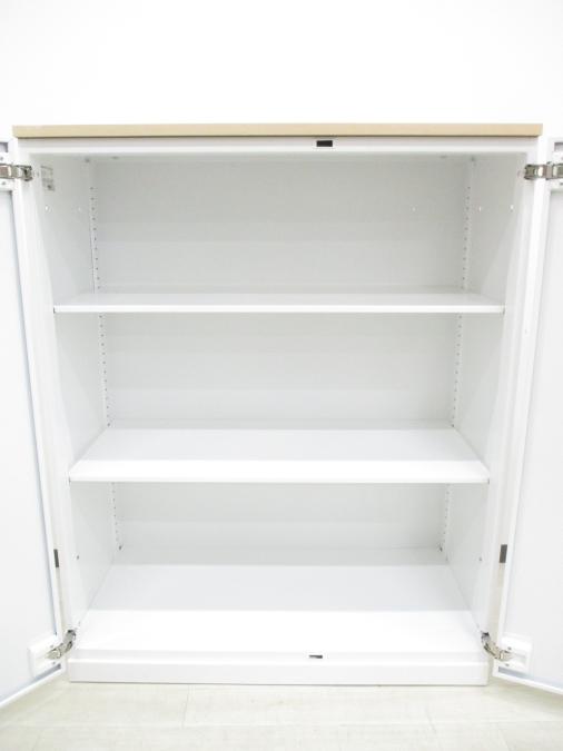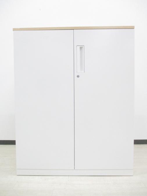 【収納物がひとめで分かる両開き戸タイプ!】■コクヨ(KOKUYO)製 エディア(EDIA)シリーズ 両開き書庫 ローキャビネット H1130㎜ ■天板・ベース付 ■ホワイト ■シリンダー錠【IB】