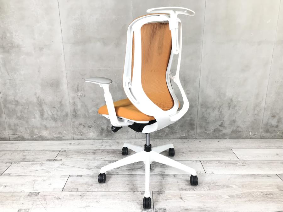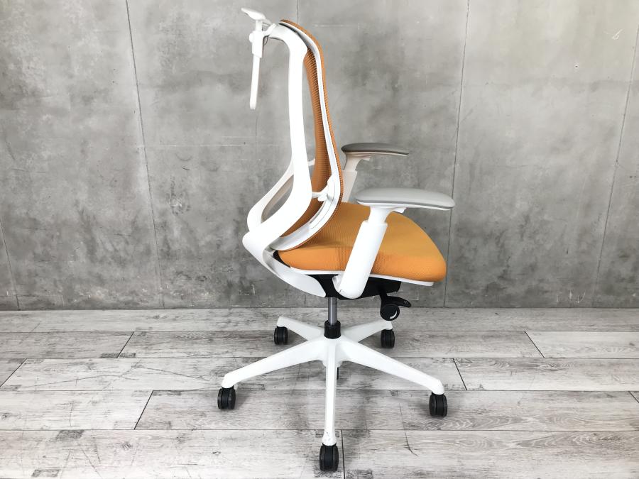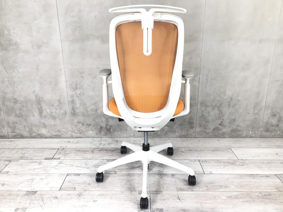 【在庫入替セール品!】【背のカーブを変えられる新感覚のオフィスシーティング!】■オカムラ シルフィーチェア 可動肘付 オレンジ ハンガー付 ホワイトフレーム ■新感覚のオフィスシーティング!【Okamrua Sylphy】