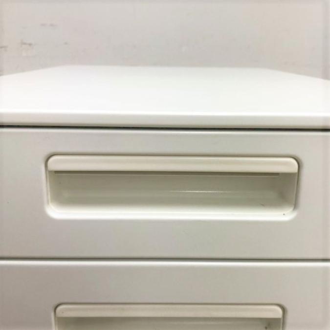 ワゴンはホワイト色 A4ファイル×2段 + ペントレー収納 もちろん鍵付きです。