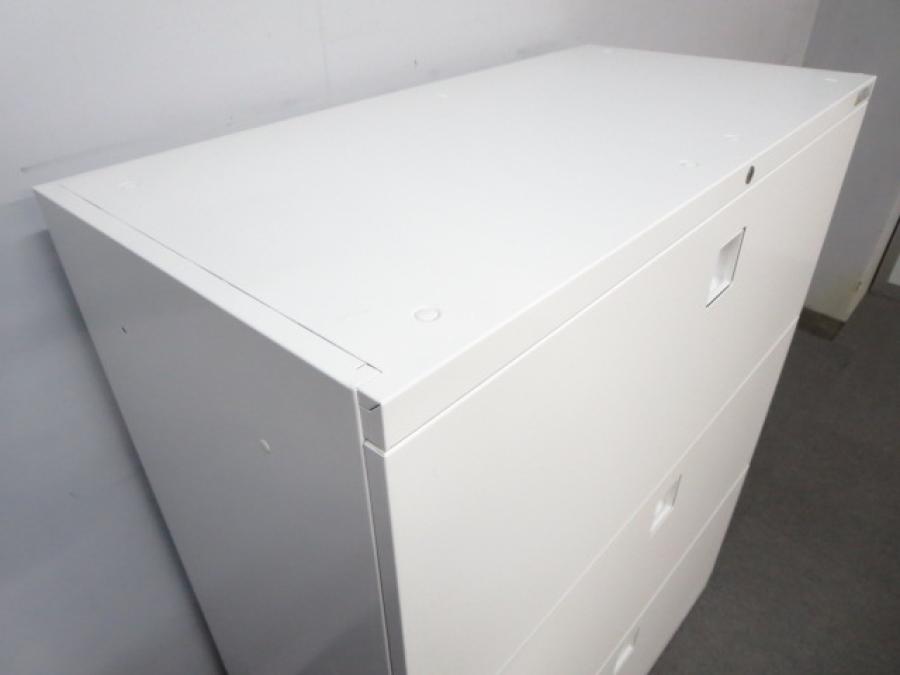 ■オカムラ(okamura)製 レクトラインシリーズ 3段ラテラル ローキャビネット ■天板・ベース付 ■シリンダー錠 ■ホワイト ■収納力抜群 外部倉庫在庫