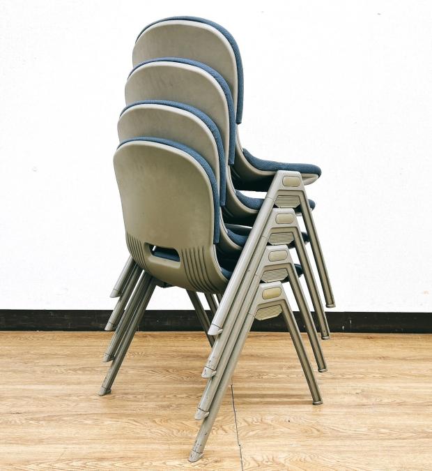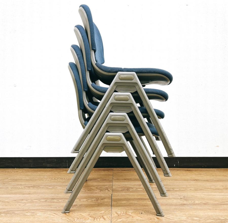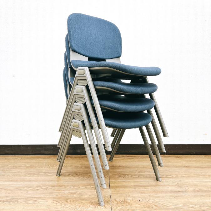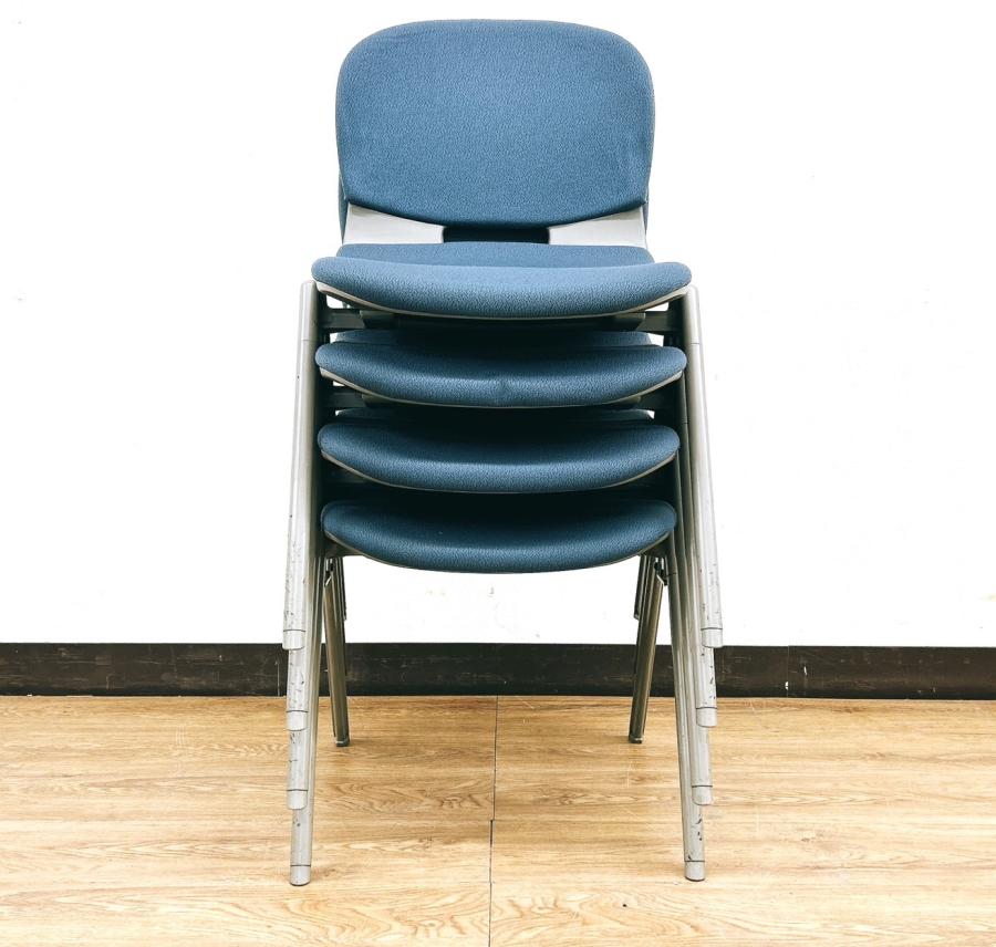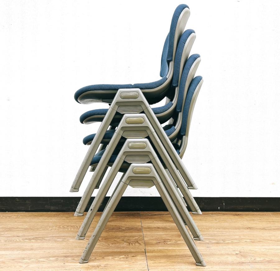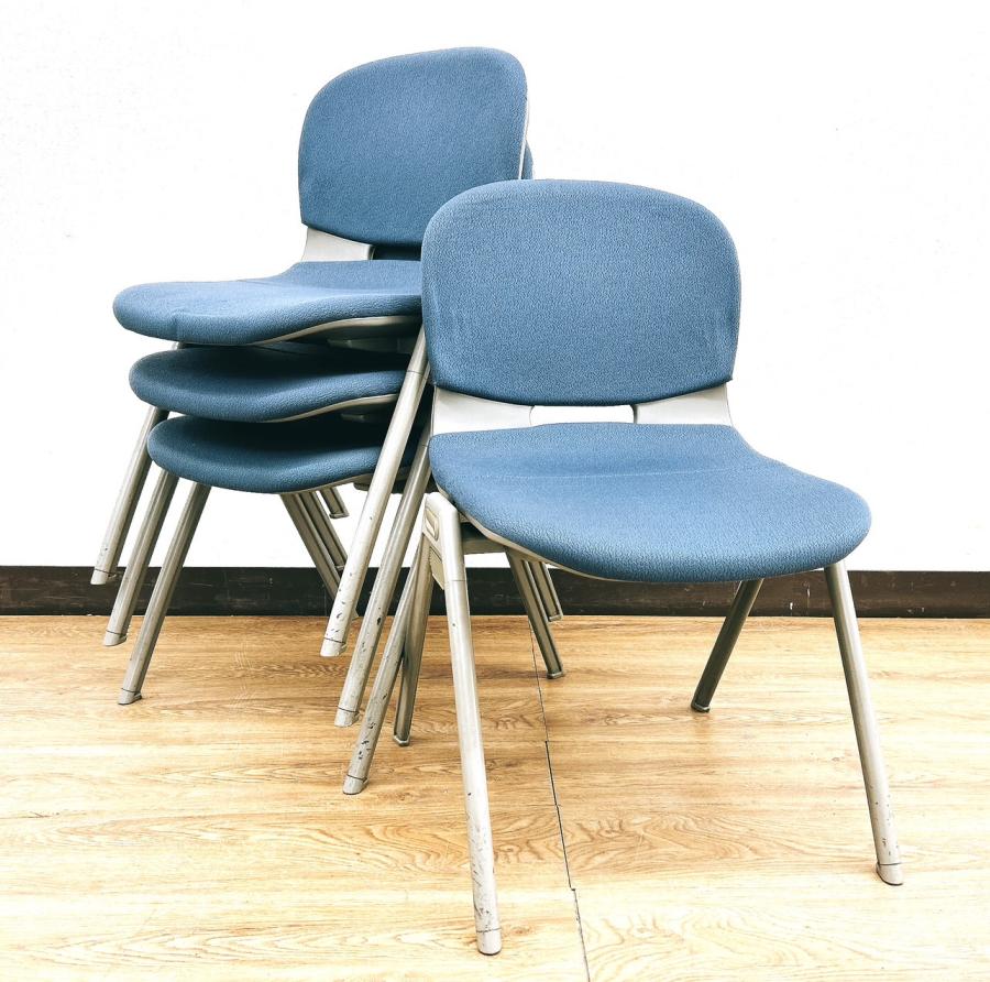 【状態要考慮】4脚セット!重ねてお片付け可能ミーティングチェア!シンプルデザインブルーカラー◆内田洋行製【RP】- 埼玉本店