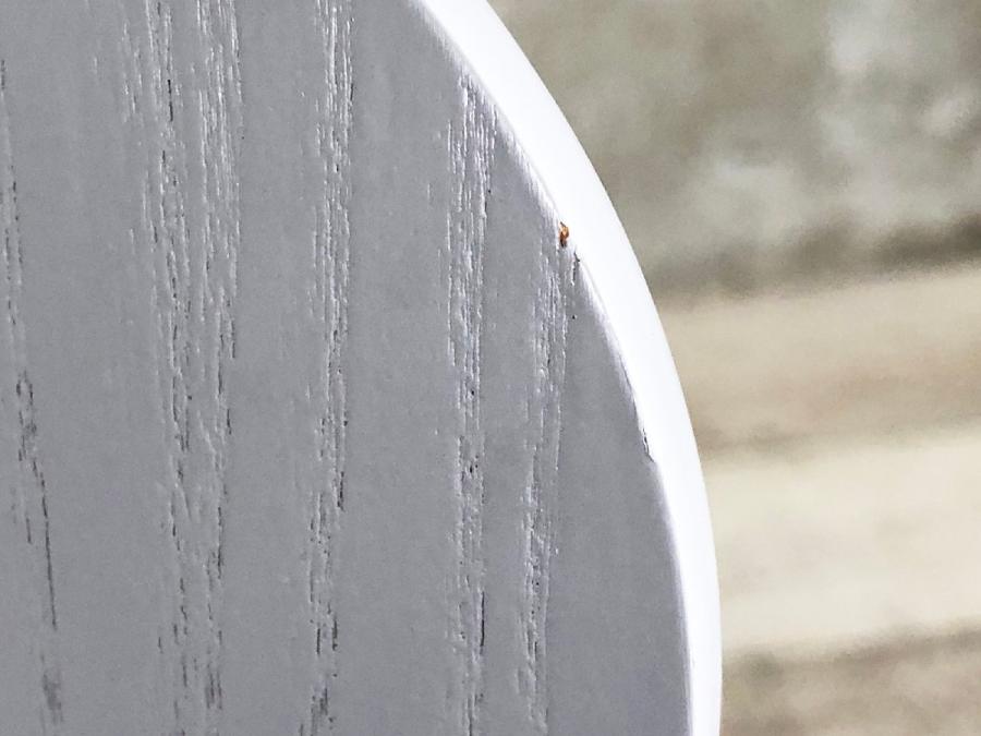 - かなり強い濃い黄ばみ・変色が商品全体にある。(例、座面・背もたれ、脚部等にある。)