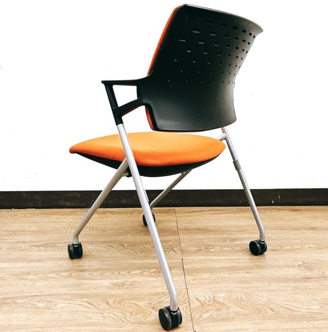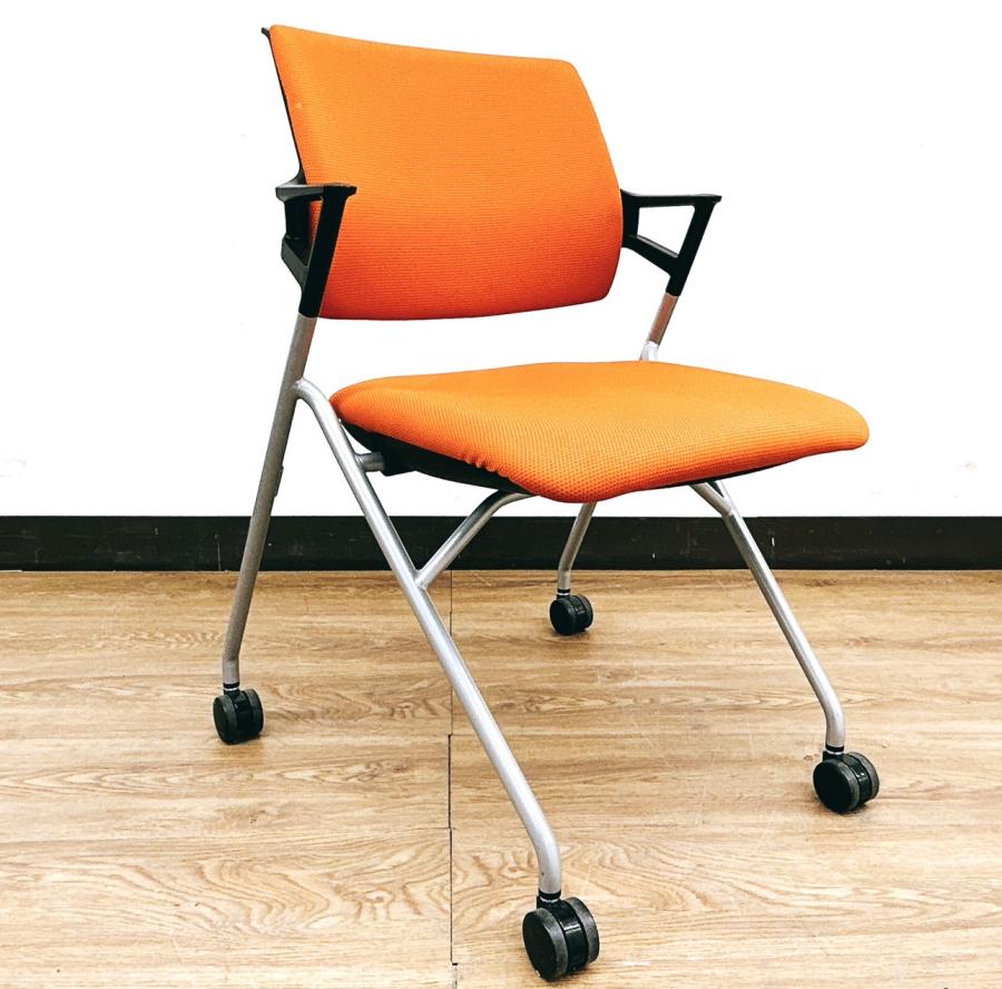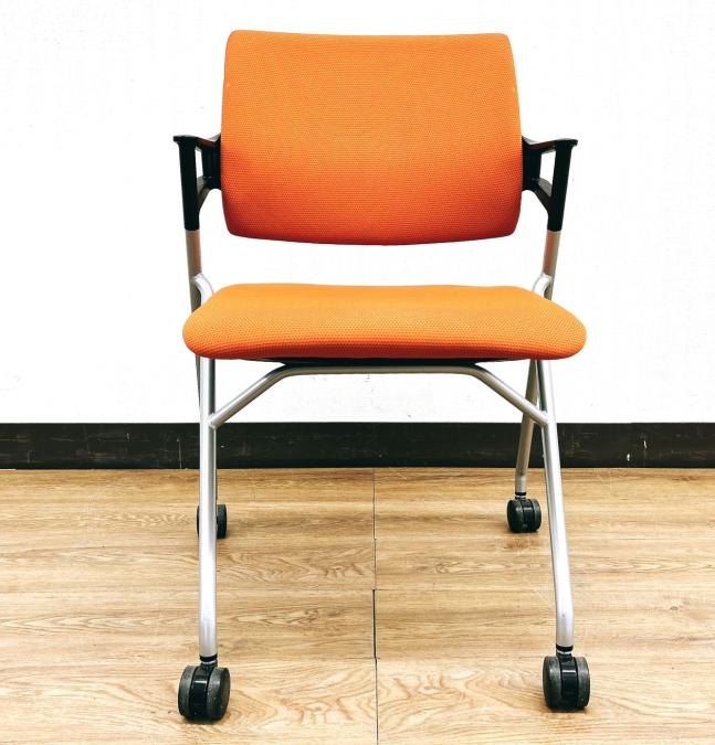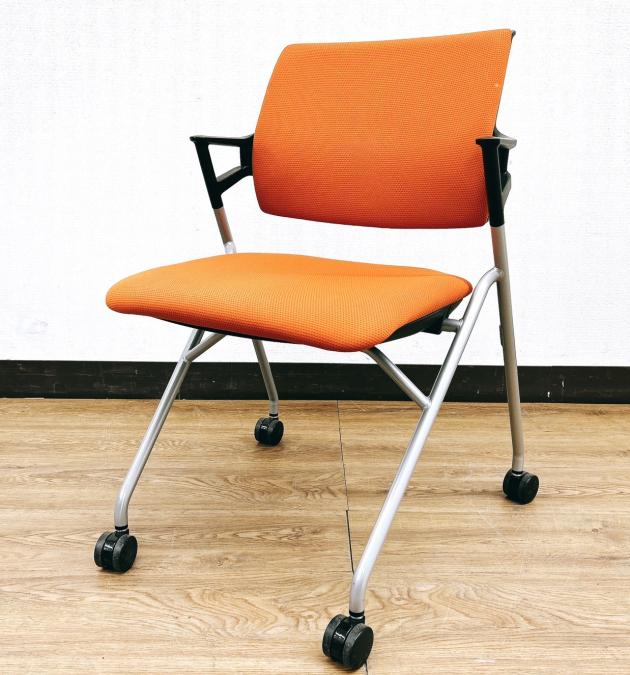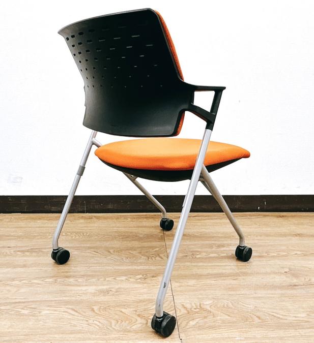 【12脚入荷】ピエガネスティングチェア⇒オレンジ&ブラックのシンプルデザインコスパ高め◆コクヨ製【RP】- 埼玉本店
