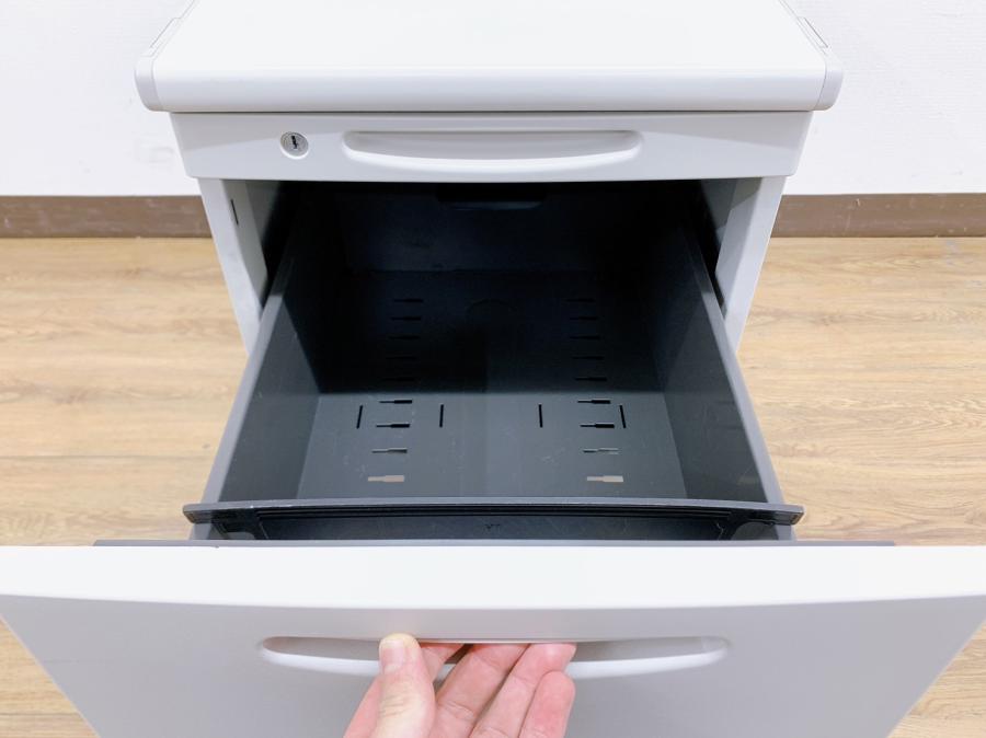 【大量入荷】【鍵付き】状態良好希少品脇机⇒作業スペース+400mm!引出3段⇒上段浅型+A4×2段タイプ※◆オカムラ製【RP】- 埼玉本店