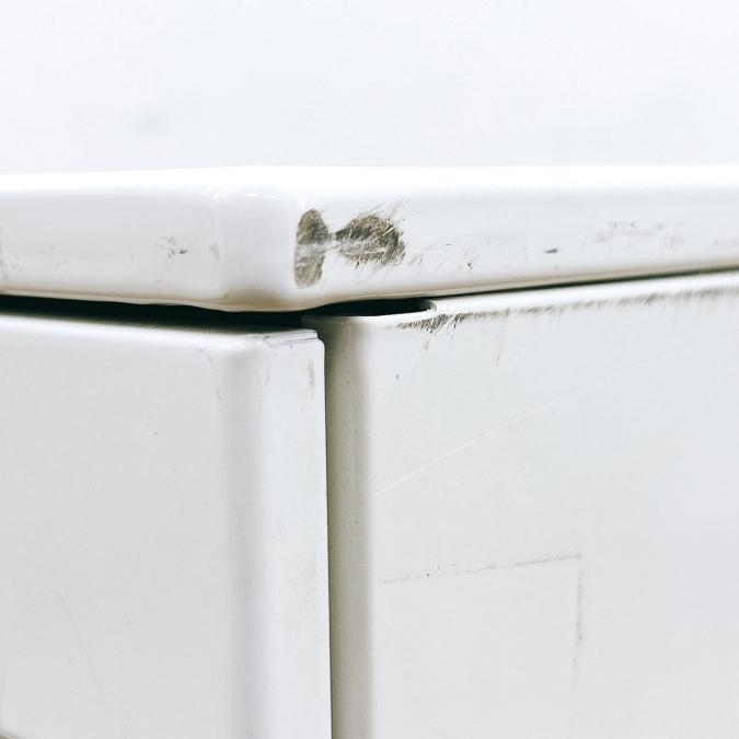 - 目立つ箇所複数あり深い傷・凹みが商品全体にある。(例、天板、正面、背後、サイド部分にある。)