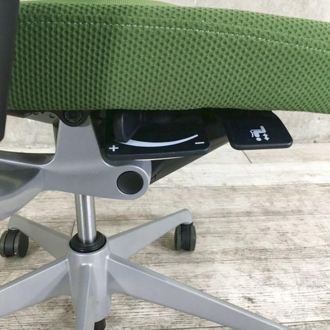 座面の高さや前後などの基本的な調整レバーが座面裏の前方に集約されており、姿勢を変えずに調節ができます。