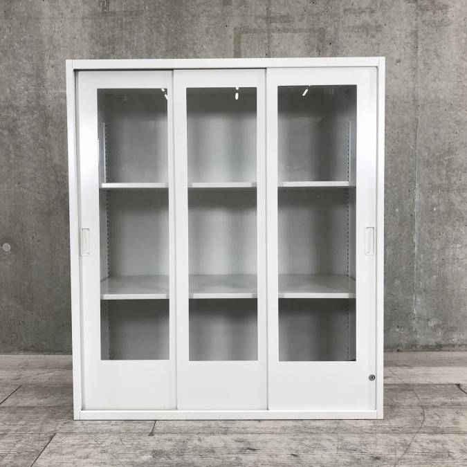 【在庫入替セール】引き違い書庫 イトーキ シンライン ホワイト シリンダー錠 鍵付き 3枚扉で使いやすい 福祉・介護・医療関係に大人気