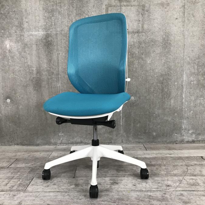 三次元曲面が身体にフィット!前傾チルト機能付き大人気メッシュチェア! ■オカムラ/シルフィーチェア(Sylphy)/ブルーグリーン×ホワイトシェル 肘付ハイバック ■背面メッシュ ■肘無し
