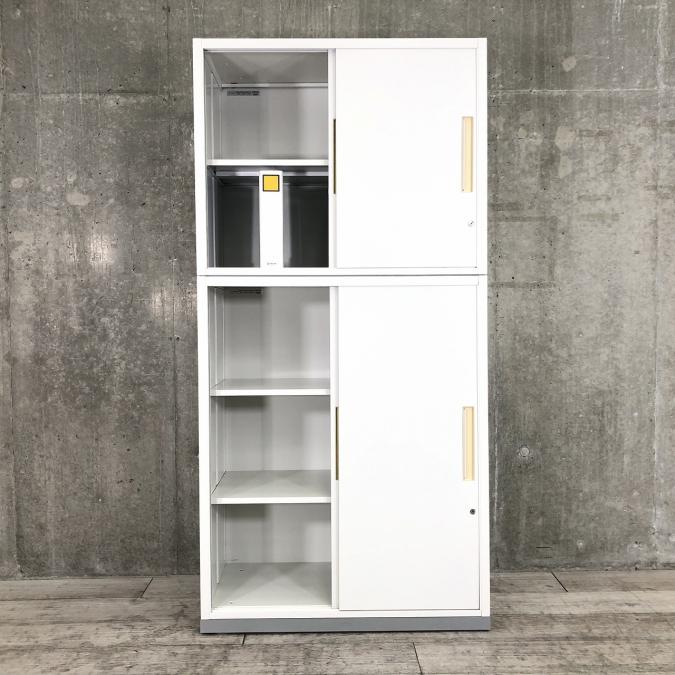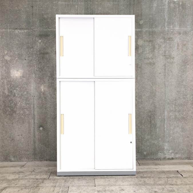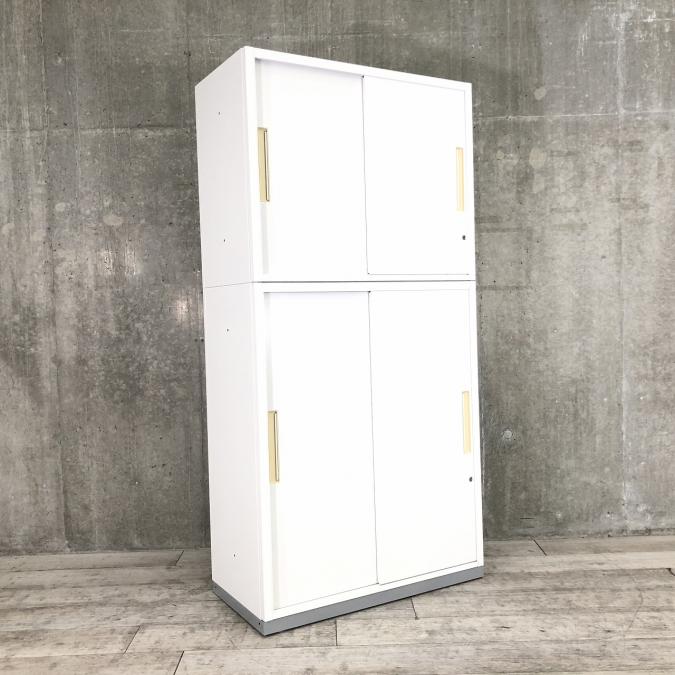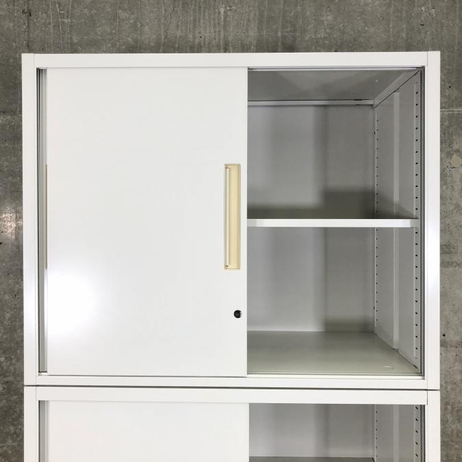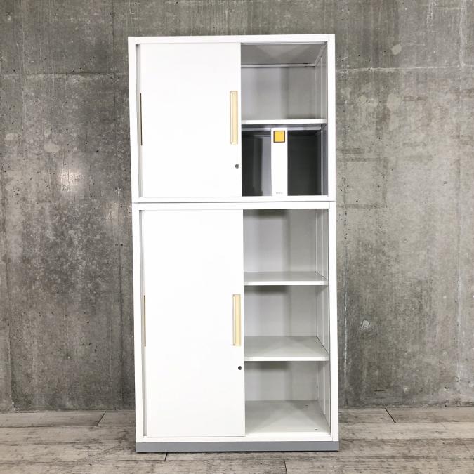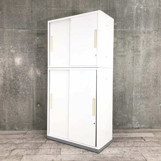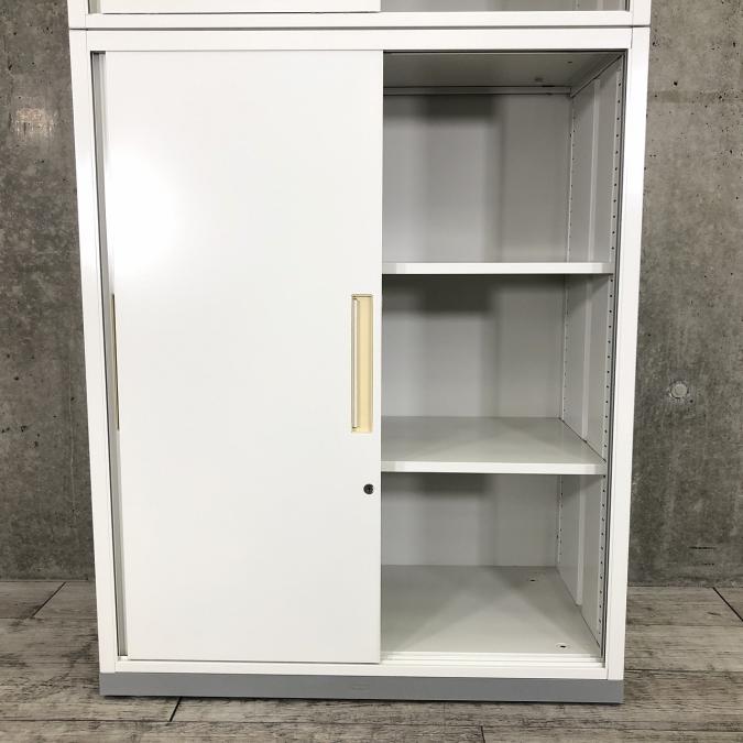 【中古では珍しい高さ2000以下の上下引き違い書庫セット!】上下両開き 書庫セット イナバ ホワイト【ホワイトキャビネットで大量収納!取っ手日焼けございます!】- 足立・葛飾店