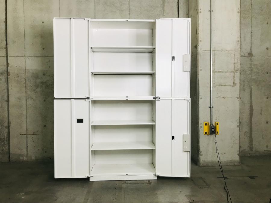 【5セット限定】【A4が6段分収納可能!搬入時は上下別の2個口での納品となるためエレベーター搬入も安心!】■イトーキ(ITOKI)製 シンライン 両開き+両開き 書庫セット ■シリンダー錠 ■色:ホワイト オフィスバスターズ 心斎橋店