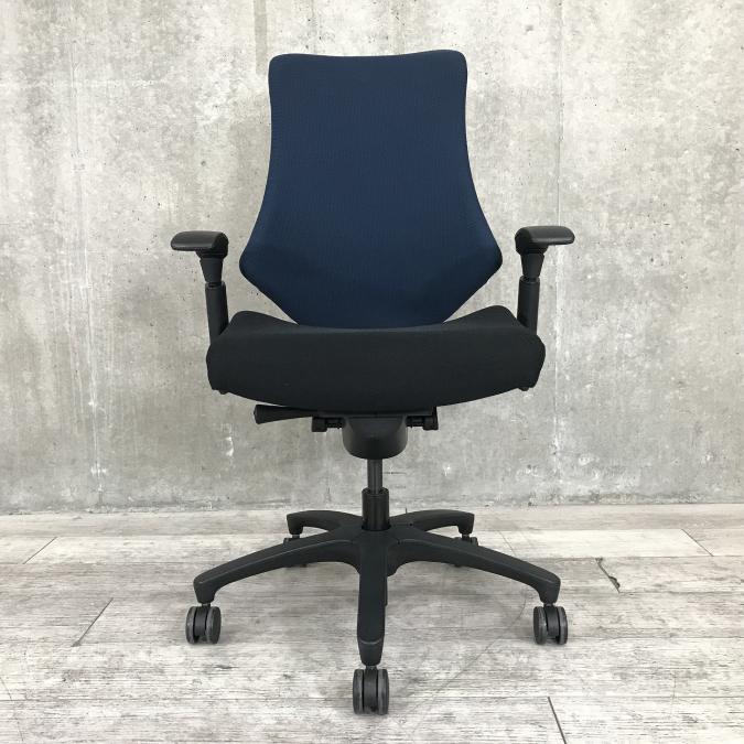 【姿勢の変化にフレキシブルに対応!】■イトーキ製 エフチェア アジャスタブル肘 ネイビーブルー ■肩回りが快適!ストレッチしやすい!- 茨城南店