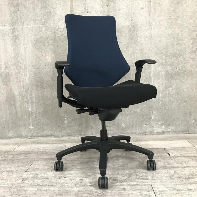 【包み込まれるフィット感!】 ■イトーキ製 エフチェア 肘付 ネイビーブルー ■デスクワークの疲労を軽減!