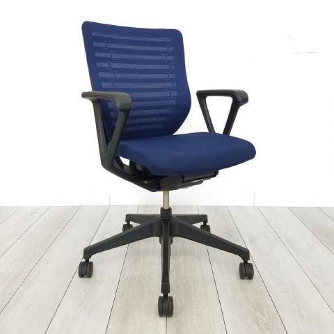 【体格にあわせた最適な座り心地!】■イトーキ製 エピオスチェア(EPIOS)肘付 ネイビーブルー ■操作レスな体重感応メカを搭載!【在庫入替】サーキュラーバリューCO2削減量の算出について