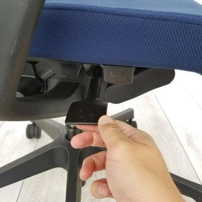 - 座面下のレバー操作により、座面を50mmのストローク(16.7mmピッチ)で好みの位置に調節できます。体格や作業姿勢に合わせたポジション設定が行えます。