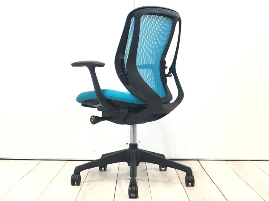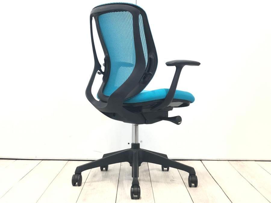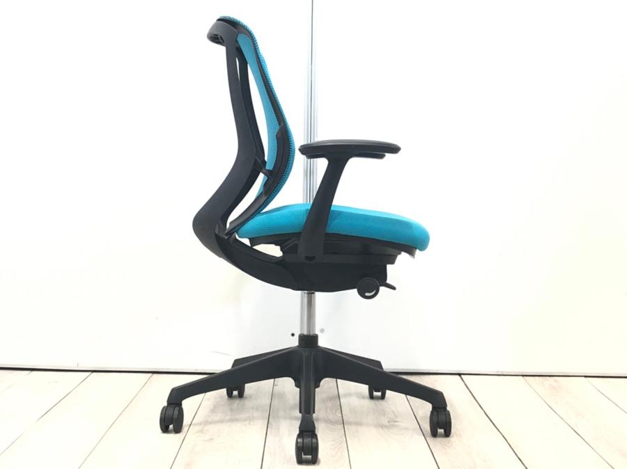 【1脚限定】【クレジット決済優先】オカムラ製の大人気シリーズ!!レアな明るい青色です!■オカムラ/シルフィー/ブルーグリーン ローバック肘付 デザインアーム 新大阪店- 新大阪店
