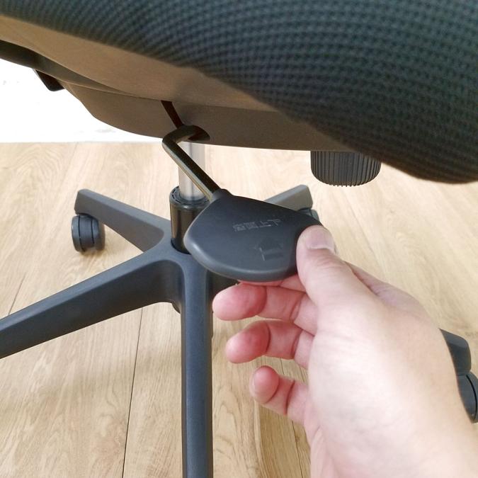 なので、「どれでも同じでしょう」と過小評価されがちですが、さすがのオカムラ製!座面の無段階上下調整やリクライニングの反発の強さ調整などに加え、リクライニンする際に足首の位置を支点にして動く、アンクルチルトリクライニングという特殊な機構が搭載されています。「人間が寄りかかる動き」にぴったりとフィットし、快適さをもたらしてくれます。