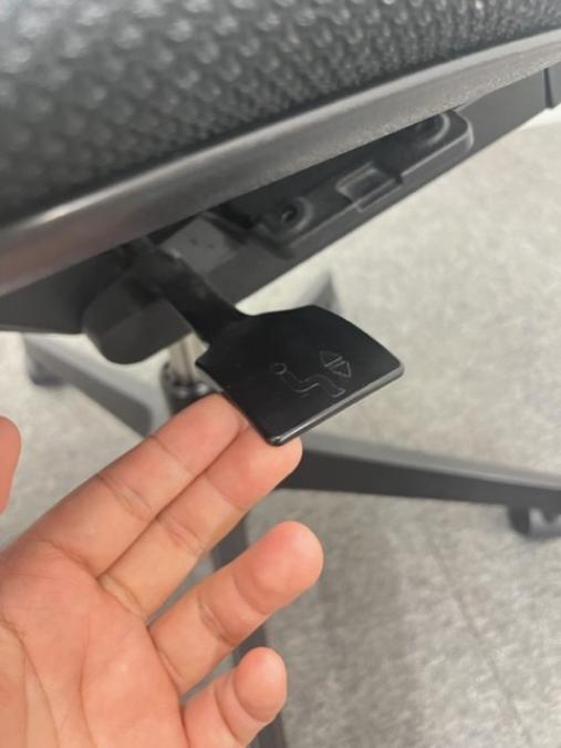 例えば、座面は、イトーキ独自の"ベンディングシート"という機構により、クッション、インターシェル、空洞という三層構造になっています。 この真ん中に挟まっているインナーシェルが、着座時の姿勢に合わせて体重を分散してくれるので、どんな姿勢でも体になじみ、疲労を軽減してくれます。 さらに、座面は前後に4センチほど奥行きを調整でき、前傾姿勢で座りたい、深く腰掛けたい、膝裏を圧迫されたくないなど、個人の好みに合った快適さにカスタマイズが可能となっています。