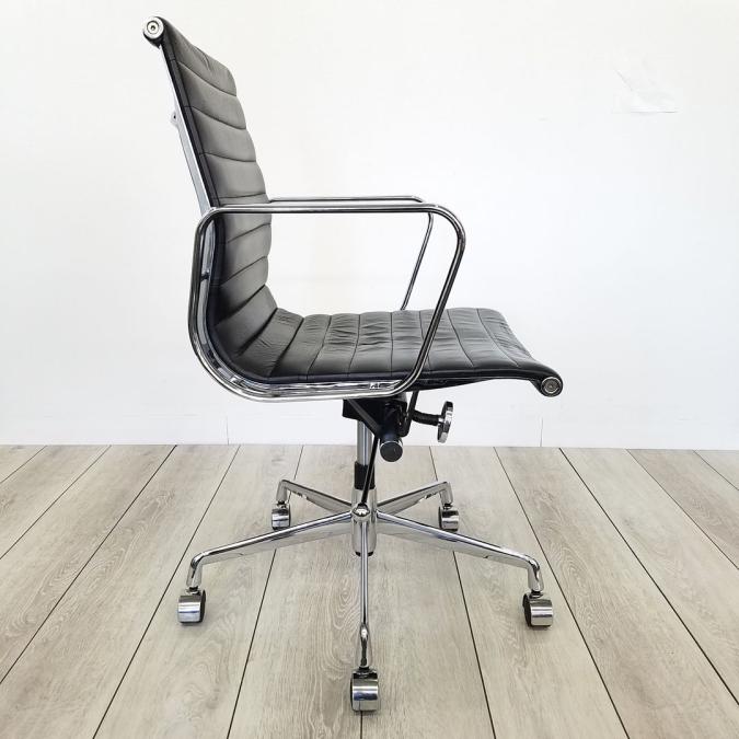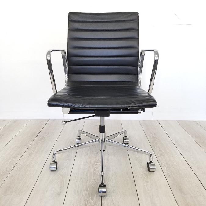 【12脚入荷】シンプルながら高級感のあるチェアです!中古 OAチェア ローバック 肘付き ブラック リプロダクト品 合皮 フェイクレザー- オフィスチェア店