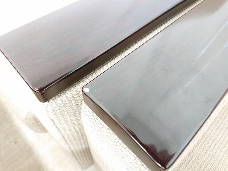 - あり黄ばみ・変色が広い範囲にうっすらある、または濃い黄ばみ・変色が一部ある。(例:三人用ソファ、二人用ソファ、一人用ソファの場合、背もたれ、肘かけ、座面等、 センターテーブルの場合、天板、脚にある。)