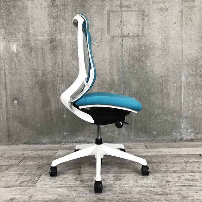 【西】~快適とデザインを両立~【オカムラ】【シルフィー】【ライトブルー】【前傾姿勢】【フレーム・脚ホワイト】【チェア】【椅子】【イス】【事務椅子】【デスク】【机】【書庫】【書棚】【棚】【ラック】【収納】【格安】【安い】【メーカー】【レイアウト変更】【模様替え】【福岡オフィス家具】【福岡中古家具】【中古事務什器】【中古チェア】【中古椅子】