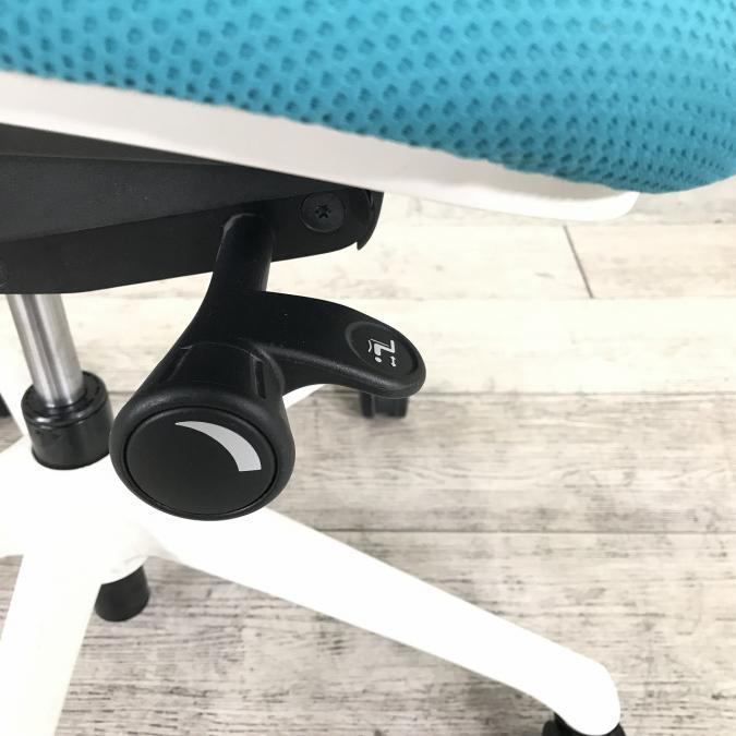 - 座面右下のダイヤル操作で、リクライニングの強弱調整が行えます。これまでのダイヤル式よりも、少ない回転数で、最弱?最強の調整が可能です。