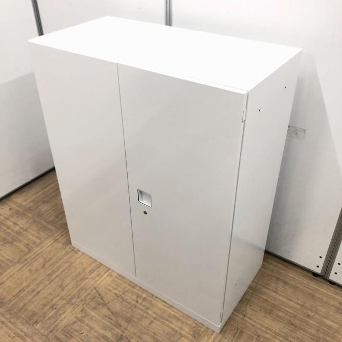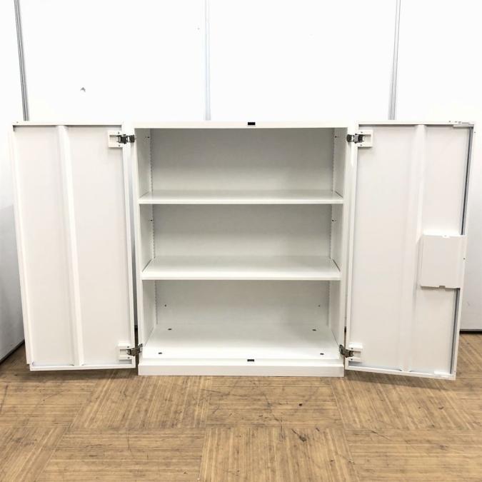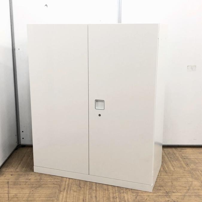 定番サイズ オカムラ/レクトラインシリーズ カラー:ネオホワイト 両開き書庫 鍵付き シリンダー錠 天板無し
