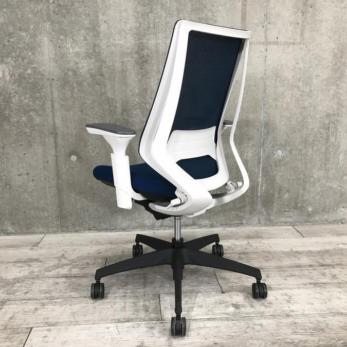 ■KOKUYO/コクヨ ■デュオラ(Duora)チェア ■プルシアンブルー×ホワイトシェル×ブラック脚 ■肘付き/可動肘 ■ハイバック ■背面/メッシュ 座面/布 ■コートハンガー付き ■オススメ/人気/定番商品 【弊社使用欄:A01040309 K】【ID】