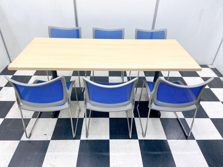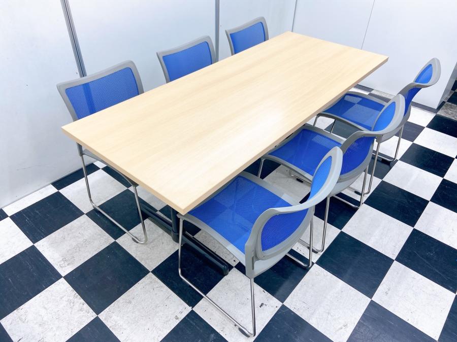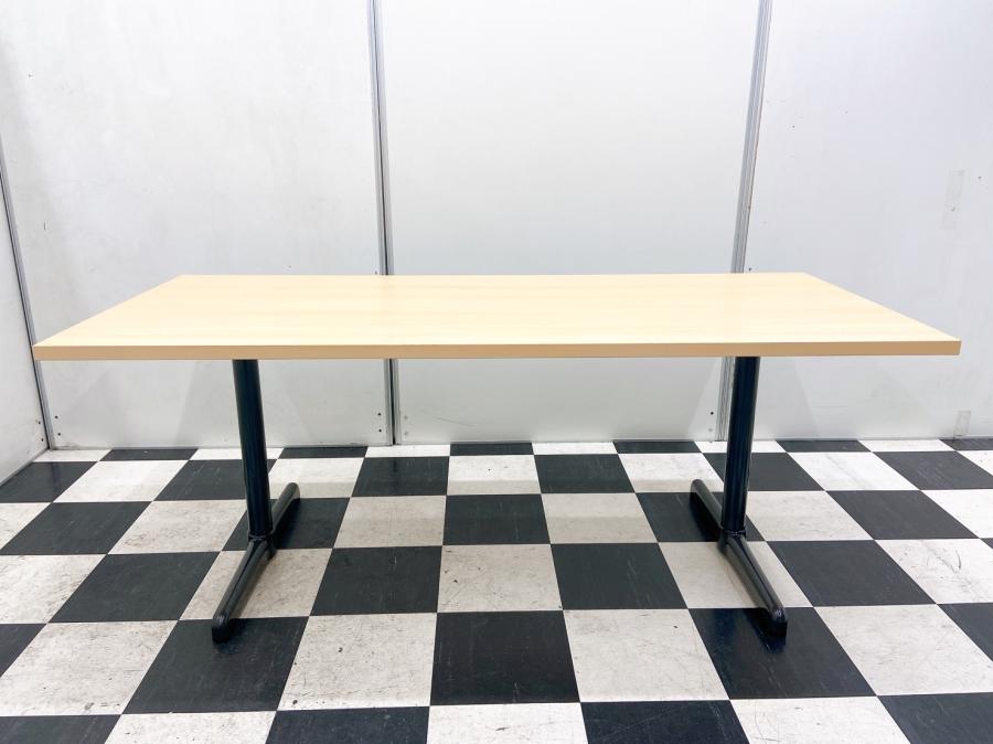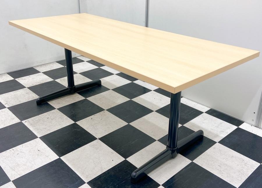 【4~6名様での使用推奨サイズ!ナチュラル×ブラックでオシャレな組合せ!】プラス製 ミーティングテーブル 幅1800㎜ 奥行750㎜ ■色:ナチュラル- 埼玉本店