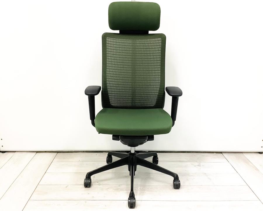 【ヘッドレスト付きならコレ!厚めのクッションで快適な座り心地を実現!】■オカムラ(okamura)製 コーラル(choral)チェア ■エクストラハイバック ■ヘッドレスト付き ■背メッシュ ■グリーン ■デザインアーム〈岐阜・愛知・三重・静岡・福井〉