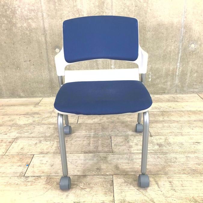 【残り2脚の為、お安く!】【キャスター付きで使いやすい!ミーティングに最適!】■ウチダ(UCHIDA)製 MF-180シリーズ スタッキングチェア ミーティングチェア ■キャスター付き ■レイズンブルー×ホワイトシェル