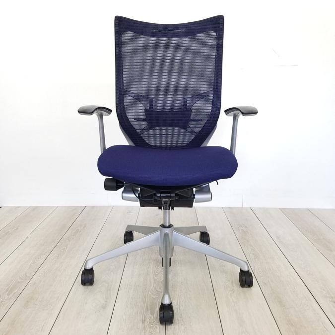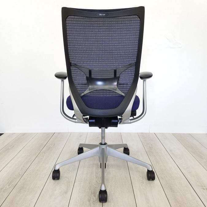 【2脚入荷】【オフィスの執務室、会議室におすすめ!】■オカムラ(okamura)製 バロン(Baron)チェア 肘付き ハイバック 背面メッシュ ■可動肘 ■ダークブルー × ホワイトシェル【硬めの座面が大人気!国産メッシュチェアの代表格!】