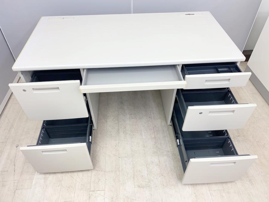 【ワークスペース充実!】■コクヨ製 両袖デスク W1400mm ■豊富な引出しで机上をスッキリ整理!- 川崎店