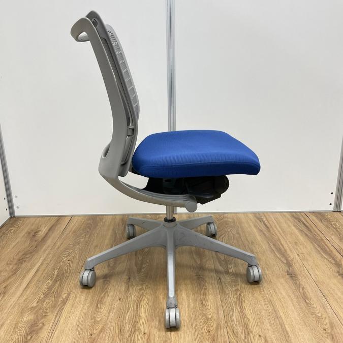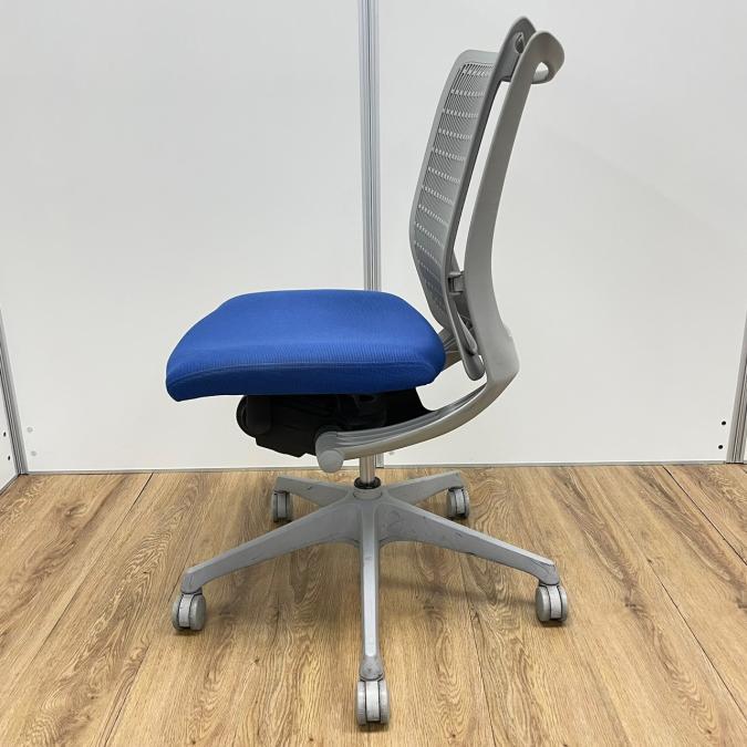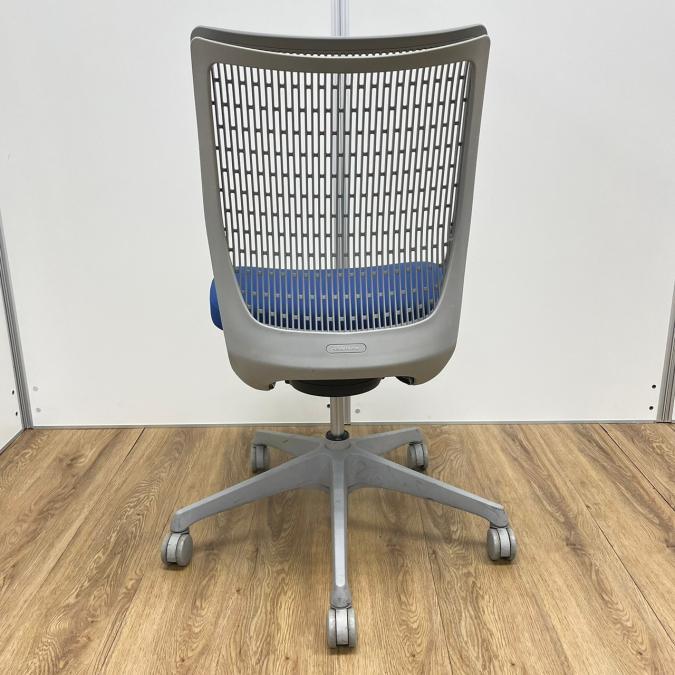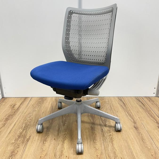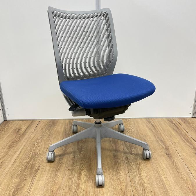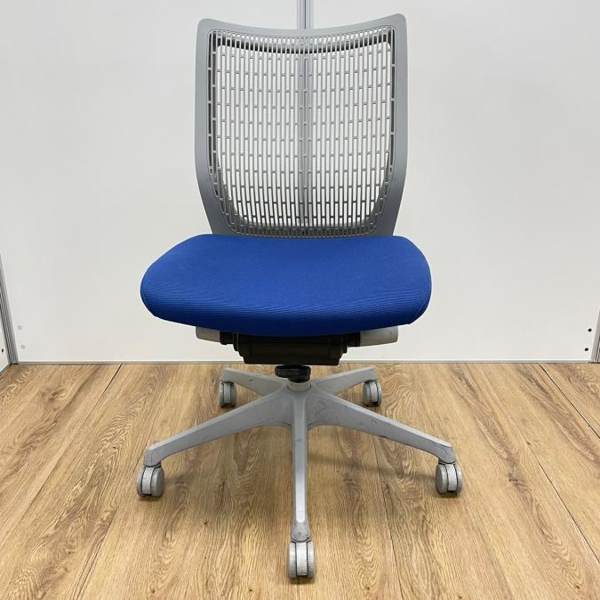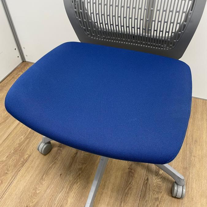 【KS】オカムラ製 ヴィスコンテシリーズ 背もたれ樹脂タイプ ミディアムブルー 肘無しローバックチェア!!- 茨城南店