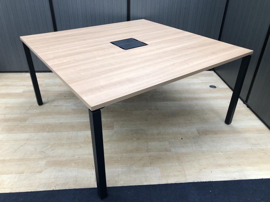 【在庫セール品・2台限定】【T12】■コクヨ製 ワークフィット ミーティングテーブル W1200×D1400㎜ ■配線カバー付き ■木目ナチュラル【配線カバー付きなのでデジタルツールを用いた会議にオススメ!】