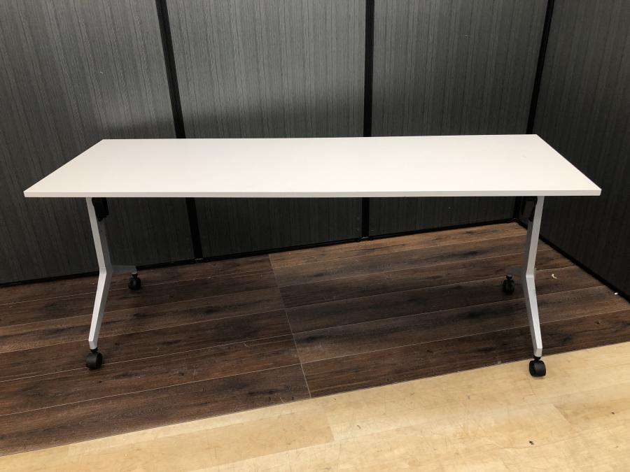 【定価約7万円】コンパクトな幅800㎜サイズのスタッキングテーブル! ■内田洋行/パラグラフ/ホワイト フラップテーブル 天板跳ね上げ 幕板付き