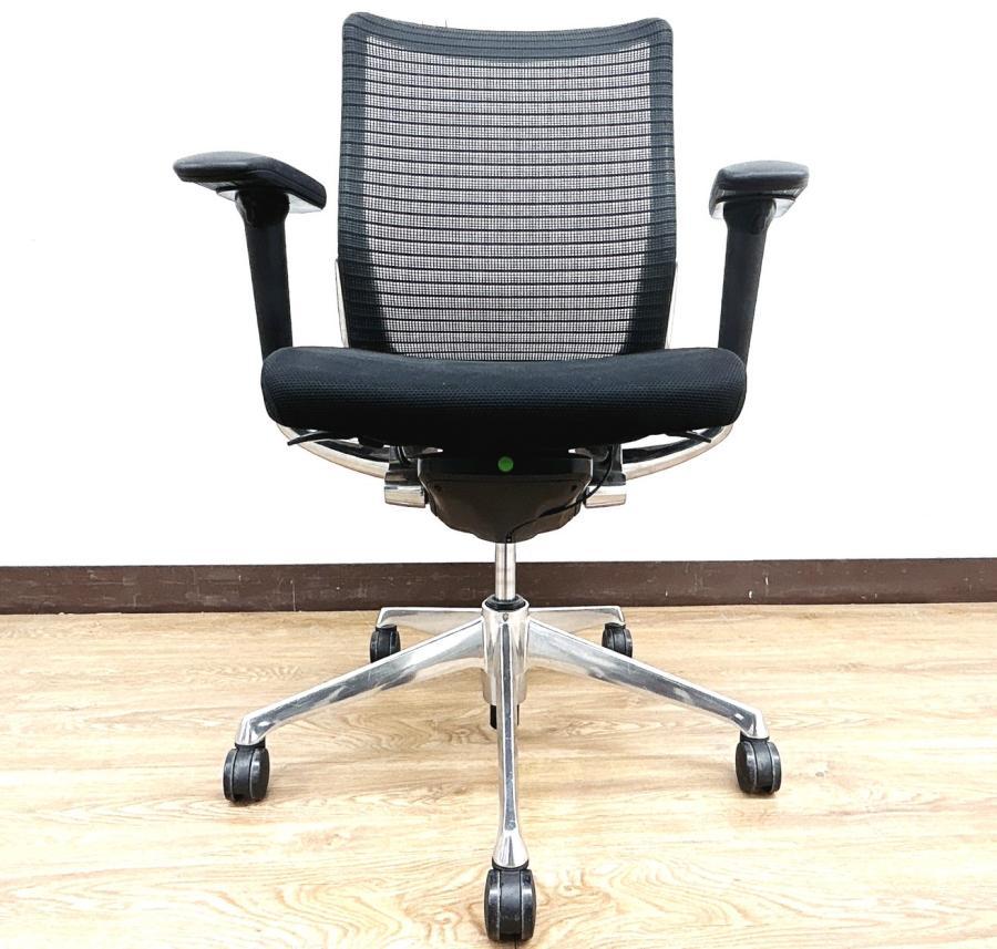 【美しいデザインの快適メッシュ!】■オカムラ製 コーラルチェア 可動肘付 ブラック ■ハイレベルなクッションで疲れにくい!サーキュラーバリューCO2削減量の算出について