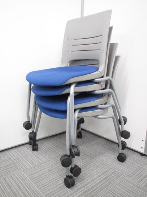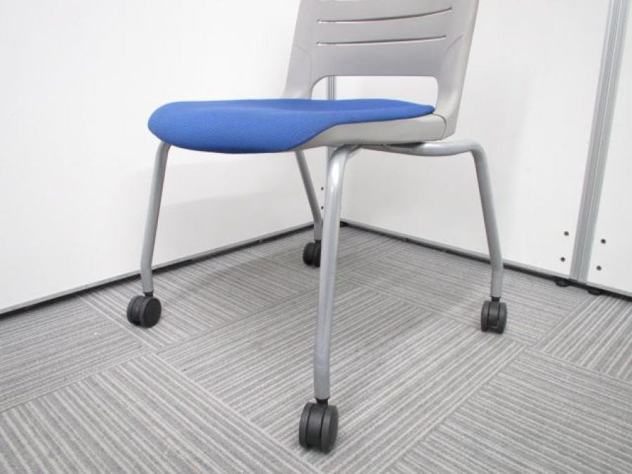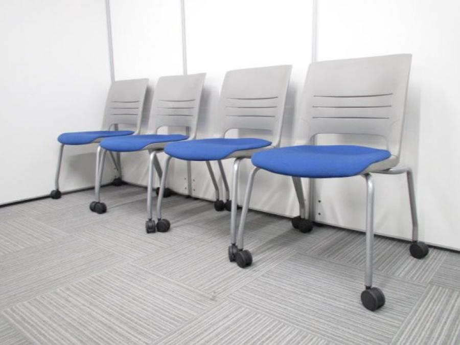 【4脚セット!】定番のブルー椅子|収納が便利でオフィスに最適な商品です!- 名古屋本店