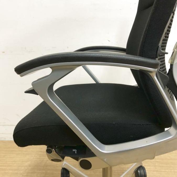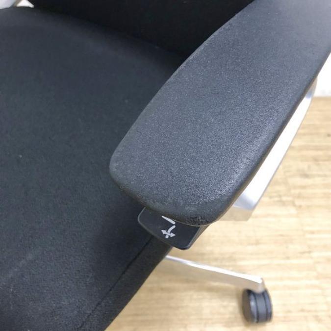 ※ひじ掛け部分に使用感ありのため、特価!【オカムラの最上級モデル!高級感と機能性を融合させたチェア!】■ハイバック 肘付き 背・座クロス張地(スエード調) 固定肘 ※サイド剥がれ有り ランバーサポート付き ブラック/オカムラ/デューク