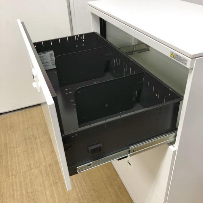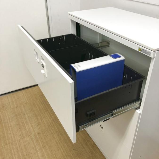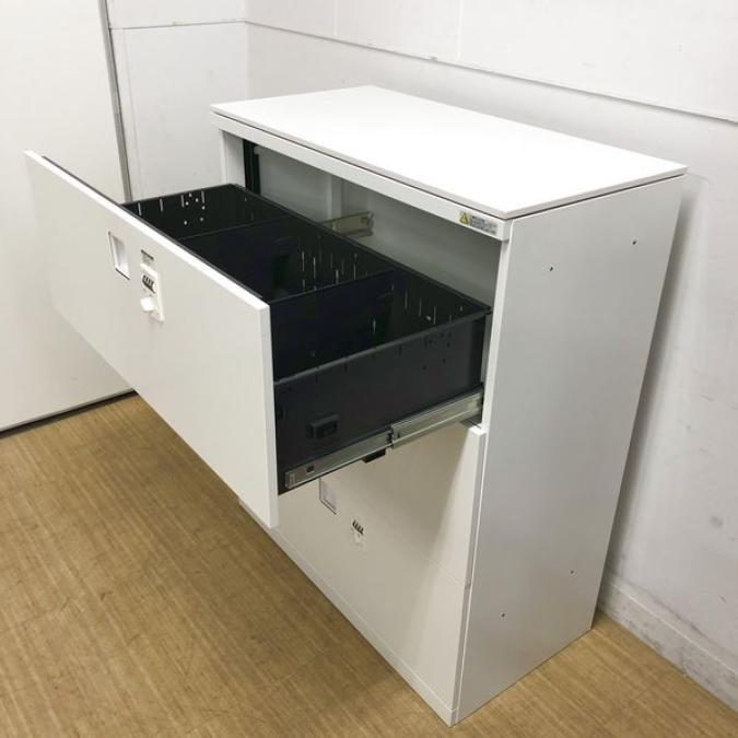 ■オカムラ(okamura)製 レクトラインシリーズ 3段ラテラル ローキャビネット ■天板・ベース付 ■シリンダー錠 ■ホワイト ■収納力抜群 外部倉庫在庫