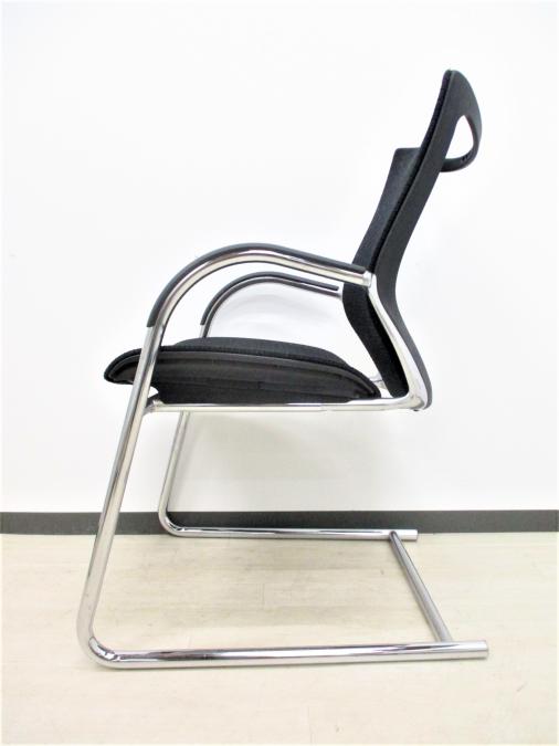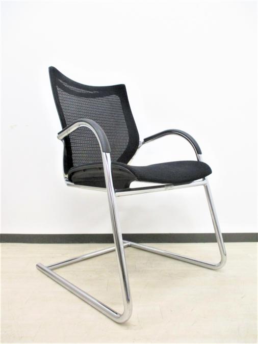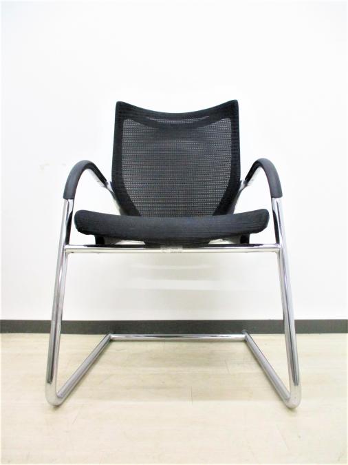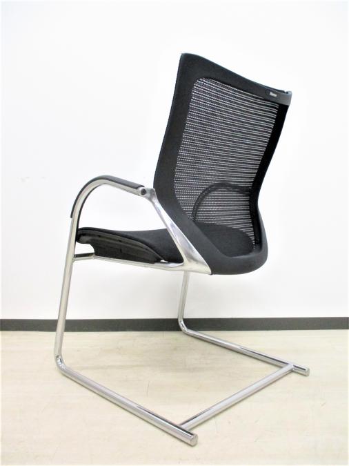 【在庫入替セール】オカムラ バロン ゲストチェア(ミーティングチェア) 背メッシュ×座クッション カンチレバー脚 ブラック×クロームメッキ